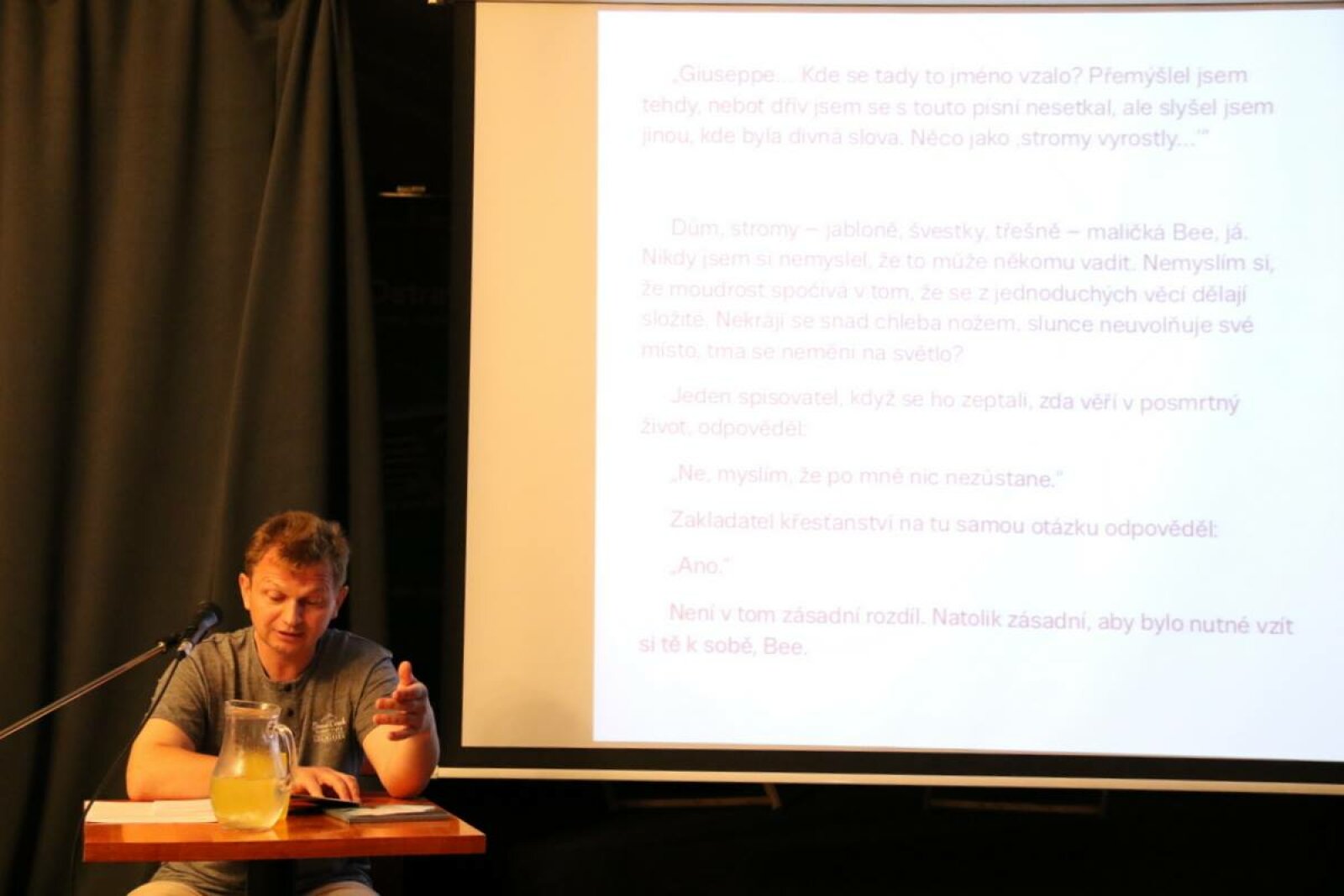 "Když jsem měl existenční problémy, tak jsem musel upřednostnit muziku, nyní se však již psaní věnuji mnohem více než hudbě," přiznal autor s tím, že psal i několik knih najednou a měl rozepsanou i básnickou sbírku. "... to máte jako když kráčíte po ulici a střídáte levou nohu s pravou, také Vám to nevadí ... nepřemýšlíte nad tím."