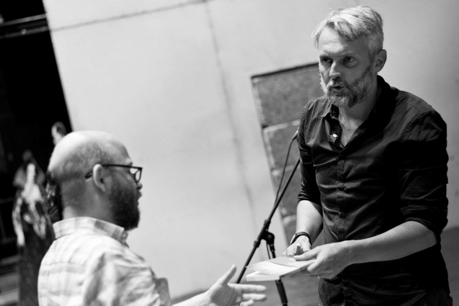 Dramaturgie večera se změnila a debata se rozhořela v Ostravě uprostřed čtení. První téma se točilo kolem bajek. "Já jsem třeba bajky četl tak, že jsem některé z postav věřil, fandil ji a pak to poučení bylo ale o někom úplně jiném, nebo vyznělo přesně opačně," naznačil Borkovec.