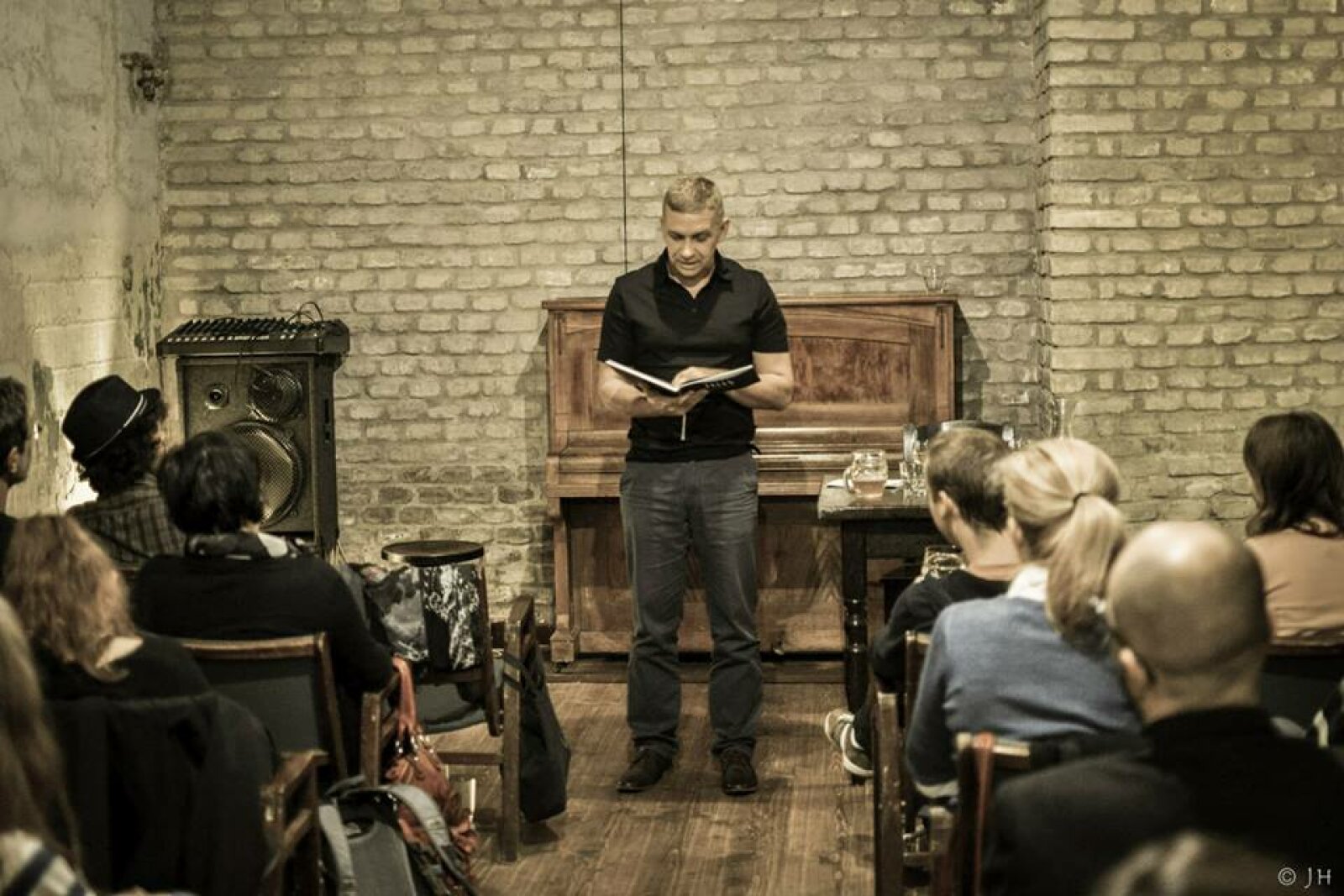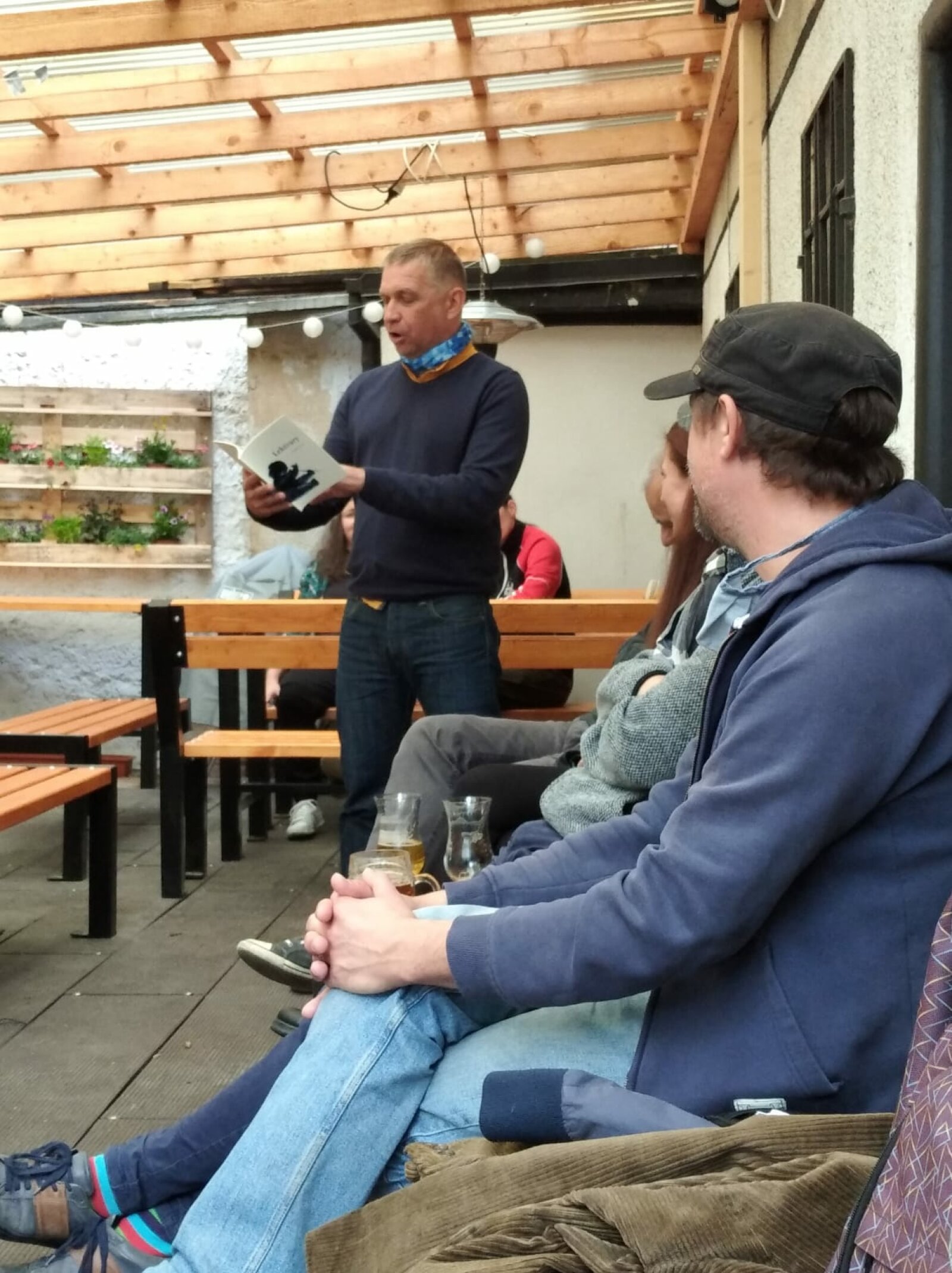 „Myslím si, že básník má ručit za své texty i svým hlasem, celou svou bytostí,“ říká, „takže nemám problém si stoupnout před lidi a recitovat. Ano, jsou to léta cviku, jestliže chceš někoho učit, musíš ho nejprve zaujmout, dvaadvacet let kantorské praxe musí být někde poznat,“ poznamenal zase pro časopis UNI.